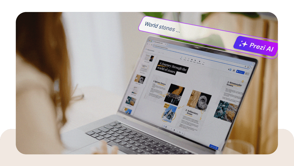 Time is precious, and Prezi AI understands that. Simply provide a prompt describing your topic, or upload a file like a PPT, PDF, or Word document, and Prezi AI generates a structured presentation in under a minute. This allows you to focus on refining your message and delivery rather than starting from scratch. This feature is especially helpful for those who regularly present but lack the time or design expertise to make their presentations truly captivating. If you create presentations with Prezi AI, you’re guaranteed to save time.