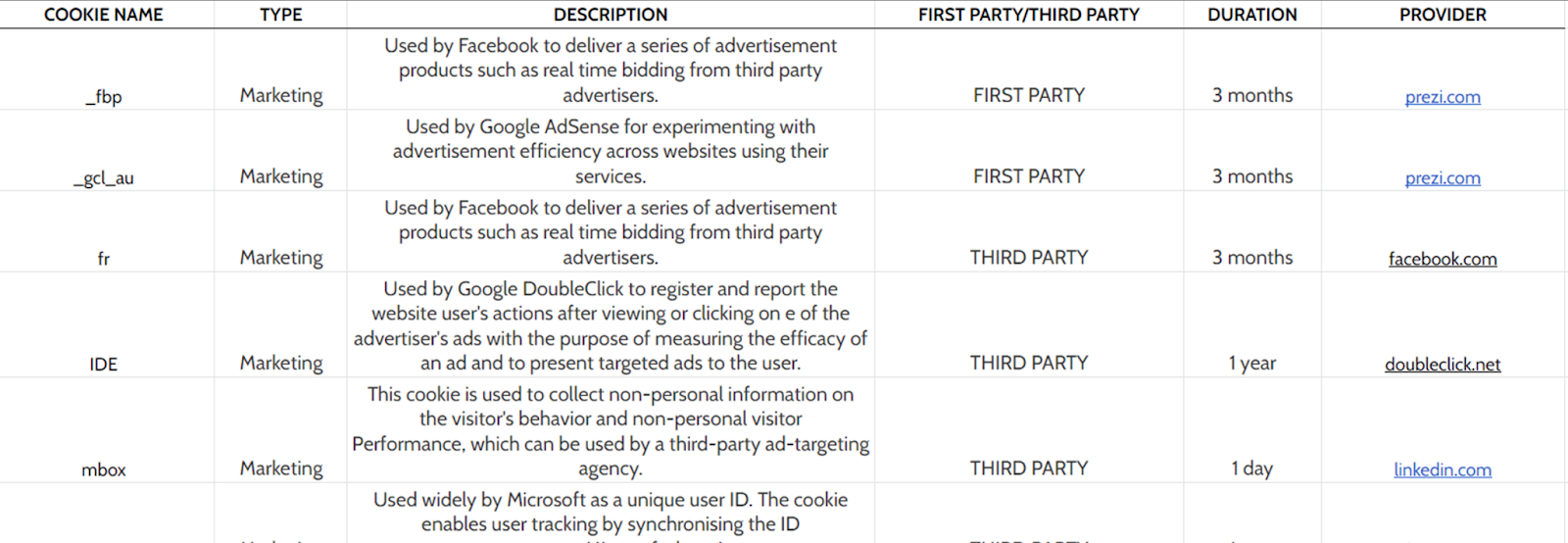 What types of cookies do we use?
