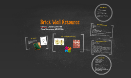 Transcript: Our resource Resources •Felt bricks to cover walls Instructions •Use all the bricks to make a rectangular wall Extension: order the bricks from largest to smallest Brick wall puzzle Resources • Laminated brick walls • Felt bricks to cover the walls • White board marker • Sock for cleaning Instructions • Children write out the different fractions that each brick represents Extension: Comparing different representations of visual fractions including felt bricks, base ten blocks and a circle divided into four. Brick wall probability game Brick wall building game Brick Wall Resource Gemma Craven 20111784 Clara Stevenson 20140186 Resources •Laminated brick walls •Felt bricks to cover walls •Dice Instructions •Players take it in turns to roll the dice •The number it lands on is the number of bricks you can use to cover your wall •The first person to cover the whole wall wins Extension: Discuss what number that each line of brick/s in the wall relates too. Resources •Laminated brick walls •Felt bricks to cover walls •Dice Instructions •Players take it in turns to roll the dice •The number it lands on is the amount of bricks you can use to cover the wall however you can only cover the line of six bricks when you roll six, and the line of one brick when you roll one etc. •If you roll six and you have already covered that line you do not get to add anymore bricks to your wall. •First player to cover the wall wins Extension: writing out numbers you roll each time and compare with class Links to everyday mathematics Laminated brick wall Felt bricks Dice Fraction table