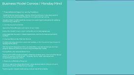 Transcript: Business Model Canvas - Prezi Template Revenue Streams Online Class Packages & Memberships Workshops & Private Sessions Teacher Training Enrollments Corporate Wellness Contracts Zoom & Online Platforms Provide reliable infrastructure for virtual yoga and meditation classes. Wellness Suppliers Delivering Online Classes Yoga equipment brands that could be co-branded or offered in packages. Yoga, meditation, and mindfulness sessions for professionals. Key Partners Cost Structure Teacher Training Development Universities & Wellness Associations Key Activities Designing and managing certified Yin Yoga teacher programs. Partnerships that build credibility for teacher training programs. Content Creation Marketing & Advertising Marketing Collaborators Digital Platform Subscriptions Filming and editing educational materials for online platforms. Influencers and health-focused publications that expand brand reach. Instructor Salaries Social media promotions and partnerships. Zoom, website hosting, and LMS tools. Payments for teaching hours and course content creation. Production Equipment Insurance & Certifications Cameras, editing software, and studio setup. Professional compliance costs. Human Resources: Certified yoga teachers, instructors, and support staff. Corporate Employees Digital Infrastructure: Video conferencing tools (Zoom), website, and online learning platforms. Key Resources Desk-based professionals needing wellness and stress relief. Intellectual Property: Recorded classes, manuals, and teaching materials. Aspiring Yoga Teachers Financial Resources: Cash flow to sustain marketing and digital production costs. Individuals pursuing certification for professional growth. Personalized Support: Individual feedback, mentoring, and progress tracking. Customer Segments Universities & Institutions Community Engagement: Social media groups and discussion forums for ongoing interaction Clients looking for structured wellness programs. Customer Relationships Loyalty & Retention Programs: Discounts for repeat clients and referrals. Wellness Enthusiasts Individuals seeking mindfulness and physical balance. Automated Communication: Regular newsletters, updates, and event invitations. Value Propositions Offers flexible and accessible yoga education for busy professionals. Provides stress management and mindfulness training for corporate wellness. Introduces a certified online Yin Yoga Teacher Training — affordable and recognized. Builds a community-driven learning experience rather than a transactional one. Channels Website & Booking Platform Central hub for course registration and information. Social media Instagram, LinkedIn, Facebook for marketing, engagement, and awareness.