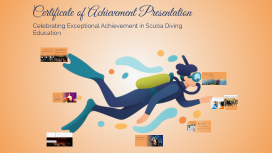 Transcript: Certificate of Achievement Presentation Celebrating Exceptional Achievement in Scuba Diving Education Introduction to the Certificate of Achievement The Certificate of Achievement serves as a formal recognition of exceptional dedication and significant accomplishments. It is awarded to individuals who demonstrate remarkable commitment to their learning and development in various disciplines. Conclusion and Future Aspirations Kennedi Pernell-Banks is committed to furthering her education and pursuing opportunities in marine science, reflecting her passion for the ocean and commitment to environmental stewardship. Recipient: Kennedi Pernell-Banks Acknowledgments: Teacher and Principal Teacher: [Name] Kennedi Pernell-Banks is honored with the Certificate of Achievement for her exceptional dedication and performance. Her journey reflects a commitment to excellence and a passion for learning in the field of marine science. The teacher has played a crucial role in Kennedi's journey by offering guidance, mentorship, and support throughout the Alien Scuba Diver program. Their dedication has been instrumental in fostering Kennedi's skills and confidence. Principal: [Name] The principal has recognized Kennedi's achievements and has been a strong advocate for academic excellence. Their encouragement has created an inspiring environment for students to excel in their pursuits. Progress Learning Overview Innovative learning environment Focus on practical skills Encouragement of personal growth Demonstrated Leadership Skills Consistent Participation High Performance in Assessments She effectively displayed leadership skills by guiding her peers and contributing positively to group projects and discussions. Kennedi consistently participated in all activities, demonstrating her commitment and enthusiasm for learning in the Alien Scuba Diver program. Kennedi achieved high performance in assessments, indicating her strong grasp of the material and dedication to excellence in her studies. Distinguished Rank: Alien Scuba Diver Outstanding Dedication and Accomplishments Kennedi Pernell-Banks has achieved a remarkable milestone by earning the distinguished rank of Alien Scuba Diver. This accomplishment highlights her exceptional skills and unwavering dedication within the Progress Learning program.