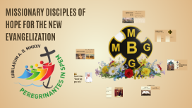 Transcript: MOTHER BUTLER GUILD You are more than a guild. You are a community of missionary disciples. You are living signs of hope. And you are at the very heart of the New Evangelization. BE NEW, BE SENT! How do we continue on this path? Be a Joyful Presence MISSIONARY DISCIPLES OF HOPE FOR THE NEW EVANGELIZATION Nourish Your Own Spirituality Let the joy of the Lord be your strength. Use Modern Means for the Good of the Gospel “You cannot give what you do not have.” The New Evangelization calls for new methods. Love One Another Your mission is not a solitary one. What is a "Missionary Disciple"? Your Service is a Mission of Love St. Vincent de Paul: “It is not enough to do good; it must be well done.” DEFINING OUR CALLING A disciple is a student, a follower, one who learns from a master. A missionary is one who is sent. Your Witness is a Source of Hope THE MOTHER BUTLER GUILD IN ACTION "We rejoice in our sufferings, knowing that suffering produces endurance, and endurance produces character, and character produces hope, and hope does not disappoint, because God’s love has been poured into our hearts through the Holy Spirit who has been given to us." (Romans 5:3-5) Evangelizing through Hospitality and Community St. Teresa of Avila: "Christ has no body now on earth but yours, no hands but yours, no feet but yours, yours are the eyes through which He is to look out Christ's compassion to the world, yours are the feet with which He is to go about doing good, and yours are the hands with which He is to bless us now." NEW EVANGELIZATION NEWNESS GOSPEL OF JESUS The “newness” lies in three things: New Ardor, New Methods, and New Expressions The Gospel of Jesus Christ remains the same. We are to be a “Church that goes forth.” Virtue of Hope Virtue of Hope It is a theological virtue. Pope Francis Christian Hope It is rooted in the resurrection of Jesus Christ. For St. Thomas Aquinas Hope is the virtue that keeps us from falling into despair or presumption.
