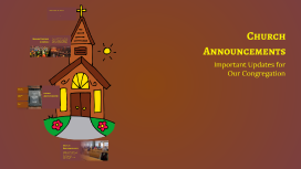Transcript: Closing Remarks Encouragement to Participate Participation in church activities fosters community spirit and connection. Members are urged to engage in upcoming events, volunteer opportunities, and outreach programs to enhance their spiritual journey and contribute positively to the church community. Youth Activities A recap of key announcements and a call to action for community involvement can strengthen engagement and participation. Engage with younger members in exciting youth activities, including game nights and retreats scheduled throughout the year. These events are aimed at nurturing faith and building relationships among the youth. Introduction to Announcements Purpose of Updates Monthly Fellowship Regular updates on church activities and events allow members to stay engaged and participative. These announcements encourage congregation involvement and enhance community bonds, ultimately strengthening the overall church experience. Join us for monthly fellowship gatherings designed for community bonding and spiritual enrichment. These gatherings foster connections among members through shared activities, meals, and discussion. Summary of Announcements Church announcements serve as vital communication tools within the community. They ensure that all members are informed about upcoming events, changes in schedule, and opportunities for involvement, fostering a sense of unity and engagement. Family Events Special Events Families are encouraged to participate in seasonal events, such as picnics and movie nights that aim to strengthen familial bonds within the church community. These events promote a sense of belonging and fun. Special events are scheduled throughout the year, such as holiday celebrations, community outreach, and guest speaker sessions. Mark your calendars for these occasions to deepen your faith and connect with the congregation. Weekly schedules, special events, and outreach opportunities have been outlined. Key highlights include the introduction of new service times and the upcoming mission projects that require community support. Prayer Meetings Service Times Workshops and Classes Our weekly service times are set to accommodate all members: Sundays at 9:00 AM and 11:00 AM, and Wednesdays at 7:00 PM. These services provide opportunities for worship, fellowship, and spiritual growth. Regular prayer meetings are held every Thursday at 6:30 PM, focusing on communal prayers and support. Participation is essential for fostering a unified spiritual environment. Workshops and classes are offered quarterly, covering various topics such as biblical studies, leadership training, and personal development. These sessions enhance spiritual growth and practical life skills. Upcoming Conferences Stay tuned for details on upcoming conferences that feature renowned speakers and transformative sessions, aimed at deepening our understanding of faith and community service. Welcome Weekly Schedule Stay informed about essential service times and exciting special events to enhance your engagement within our church community. Announcements keep everyone connected and informed in the church community. Prayer Requests 1 Prayer requests are vital for fostering community support and spiritual connection. They allow members to share their needs and uplift one another through collective prayer. Current Needs How to Submit Requests The church is currently focusing on several significant prayer needs, including members facing health challenges, those experiencing loss, and families in crisis. These highlights represent collective concerns that require our prayers and support as a community. Members can submit prayer requests via the church's website, during service, or through a dedicated prayer box in the church lobby. This ensures everyone has a voice in our communal prayers and needs can be addressed in a timely manner. 2 Community Engagement Church Announcements Involvement in community activities fosters connections and strengthens bonds within the congregation. Volunteer Opportunities Group Activities Participating in group activities enhances fellowship and strengthens church ties. Regular group meetings, Bible studies, and social events cater to different interests, fostering connections among members and creating a sense of belonging within the community. Church volunteer programs are essential for supporting community services. The church seeks individuals in various roles such as helping with events, mentoring youth, or visiting the elderly, thereby creating a positive impact while fulfilling spiritual duties. 3 6 Stay Updated with Your Community Workshop Offerings Participate in hands-on workshops designed to foster spiritual growth, practical skills, and community connections. Topics range from financial stewardship to personal faith development, tailored to all age groups and backgrounds. Announcements of Interest Spotlight on Guest Speakers Engage with our church community through impactful guest