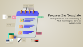 Transcript: Introducing an Innovative Progress Bar Template This presentation outlines a progress bar template tailored for three primary items, with the added feature of two subcategory progress bars for one of the items. This design enhances visual tracking and clarity of progress across multiple dimensions. Progress Bar Template Three Main Items The progress bar template is designed for three main items, providing a clear visual representation of their respective progress. This template is beneficial for tracking completion status at a glance. Overview of the Progress Bar Template Subcategory Comparison Among the three items, one features two subcategory progress bars, allowing for detailed comparison between related tasks or metrics. This segmentation enhances clarity in tracking progress. A Comprehensive Guide to Creating a Multi-Item Progress Bar with Subcategories Progress Status of Item 1 Visual representation of the completion progress for the first item. Current Status Item 1 is currently at 75% completion, indicating significant progress towards finalization. Effective Visualization of Progress Overall Completion Status Item 3 Progress Bar This progress bar illustrates the completion level of the third item in the template, providing a clear visual representation of its status. It is a single, straightforward bar that indicates how much of the task has been completed in relation to the total requirement. The progress bar template successfully highlights the status of three main items, with one item divided into two subcategories, providing a clear and concise overview of progress tracking. Subcategory B Progress Subcategory A Progress The second subcategory progress bar provides insights into another facet of Item 2, illustrating its own progress level. Comparing both subcategory bars side by side offers a clear overview of the differences in progress, facilitating better tracking and evaluation. The first subcategory progress bar represents a specific aspect of Item 2, showcasing its completion percentage in a visual format. This helps in understanding how much of this aspect has been achieved, making it easier to monitor development.