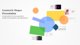 Transcript: The Importance of Geometric Shapes in Everyday Life Geometric shapes play a crucial role in numerous real-world applications, from architecture and engineering to art and design. By mastering their properties and classifications, one can enhance problem-solving skills and creativity in various fields. Architecture Design In architecture, geometric shapes are essential for designing buildings and structures, providing stability and aesthetic appeal through well-defined forms. Engineering Applications Engineers utilize geometric shapes in creating efficient and effective designs for machinery and infrastructure, ensuring functionality and safety. Applications of Geometric Shapes Geometric Shapes Presentation Artistic Expression Artists often incorporate geometric shapes in visual art to create patterns, compositions, and innovative artworks that challenge perceptions. Mathematical Problem Solving In mathematics, geometric shapes are fundamental in teaching concepts and solving problems involving area, volume, and spatial reasoning. An exploration of various geometric shapes, their properties, and applications. Distinction Between 2D and 3D Shapes Understanding the fundamental differences and characteristics of geometric shapes across dimensions. 2D Shapes 2D shapes are defined by only two dimensions: length and width. They are flat and can be drawn on a plane without any depth. Examples include circles, squares, and triangles. 3D Shapes 3D shapes incorporate three dimensions: length, width, and depth. These shapes occupy physical space and can be visualized from multiple angles. Examples include cubes, spheres, and pyramids. Defining Properties Diversity in Triangles Geometric shapes possess distinct attributes that define their characteristics, such as the number of sides, angles, and symmetry. These properties allow us to categorize and analyze shapes effectively. For instance, a square, which is a type of quadrilateral, has four equal sides and four right angles, making it a regular polygon. In contrast, a triangle can have varying attributes depending on its type, such as equilateral, isosceles, or scalene. An equilateral triangle has three equal sides and angles, while a scalene triangle has sides of different lengths and angles of different measures. This diversity in properties helps illustrate the complexity and beauty of geometric shapes. Two-Dimensional Shapes Two-dimensional shapes are flat and have only length and width. They include basic shapes such as circles, squares, rectangles, and triangles, each defined by unique characteristics like the number of sides and angles. Types of Geometric Shapes Three-Dimensional Shapes Three-dimensional shapes possess depth in addition to length and width, allowing them to occupy physical space. Examples include cubes, spheres, cylinders, and pyramids, which can be analyzed in terms of volume and surface area. Understanding Geometric Shapes: The Building Blocks of Mathematics and Design Geometric shapes are essential components in both mathematical theory and practical design. They encompass a variety of forms, each with unique properties that contribute to their classification. This presentation will delve into the significance of these shapes and their applications in different fields.