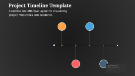 Transcript: Components of the Timeline Project Timeline Template Milestones Tasks and Deliverables Milestones represent key points in a project timeline, marking significant phases or events. They serve as critical indicators of progress and help stakeholders track completion against strategic goals. Tasks break down milestones into actionable steps, clarifying responsibilities for team members. Each task should align with a deliverable, ensuring every action drives the project toward completion. Dependencies Deadlines Dependencies illustrate the relationships between tasks, highlighting how the completion of one task affects another. Identifying dependencies is crucial for effective scheduling and resource management. Deadlines set clear expectations for when tasks and milestones should be completed. They create urgency and accountability, influencing workflow and resource allocation throughout the project. Resources Required Resource requirements outline the personnel, tools, and budget needed for task completion. Properly estimating resources is essential to avoid bottlenecks and ensure smooth project execution. Designing the Timeline Template Format Options There are various format options for timelines, including Gantt charts and linear layouts. Gantt charts effectively show task durations and dependencies, while linear timelines provide a straightforward view of project phases. Example Templates Visual Elements Example templates can serve as effective starting points. Many online resources provide free or customizable templates that can be adapted to specific project requirements, saving time and improving consistency. Incorporating visual elements like colors and icons can significantly enhance engagement. Colors can indicate progress or phases, while icons can represent tasks or milestones, making the timeline more intuitive. Customization Tips Customizing timelines according to project scope and audience is critical. Tailor the complexity of visuals and details based on stakeholder preferences to ensure effective communication and engagement. Software Tools Consider software tools like Microsoft Project, Trello, or Asana for creating timeline templates. These platforms offer user-friendly interfaces and features to customize timelines based on project needs. Designing an Effective Framework for Project Presentation Introduction to Project Timeline Importance of a Timeline Timelines provide a visual representation of a project's schedule, which aids in setting priorities, tracking progress, and ensuring timely completion. They help identify potential bottlenecks and allocate resources efficiently, fostering accountability within the team. Overview of Key Phases The timeline of a project is divided into several key phases: initiation, planning, execution, monitoring, and closure. Each phase has specific objectives and timeframes that are critical to the project's overall success, providing a structured framework to follow. Purpose of the Presentation This presentation aims to equip participants with the skills to create an effective project timeline template. By understanding the essential components, attendees will enhance their project management capabilities, fostering successful project execution. Presenting the Timeline Best Practices for Presentation Engaging Your Audience Ensure the timeline is clear and visually appealing. Use consistent formatting, incorporating colors and symbols to differentiate phases and milestones. Practice delivering the content to maintain engagement and adjust based on audience feedback throughout the presentation. Utilize storytelling techniques to illustrate the project’s context and relevance, making the timeline relatable. Encourage participation by asking questions and integrating audience feedback during the presentation. Follow-up Steps After Presentation Addressing Questions and Feedback Allocate time for questions after presenting each section to clarify any doubts. Be prepared for potential critiques, and use them constructively to enhance the project's planning and execution phases. Circulate a summary of key takeaways and action items post-presentation. Schedule follow-up meetings to review progress and ensure transparency, keeping all stakeholders aligned with project milestones. Tools for Ongoing Tracking Utilize project management software such as Trello or Asana to maintain real-time updates on tasks and timelines. These tools enhance collaboration, allowing stakeholders to monitor progress and adjust timelines as necessary.