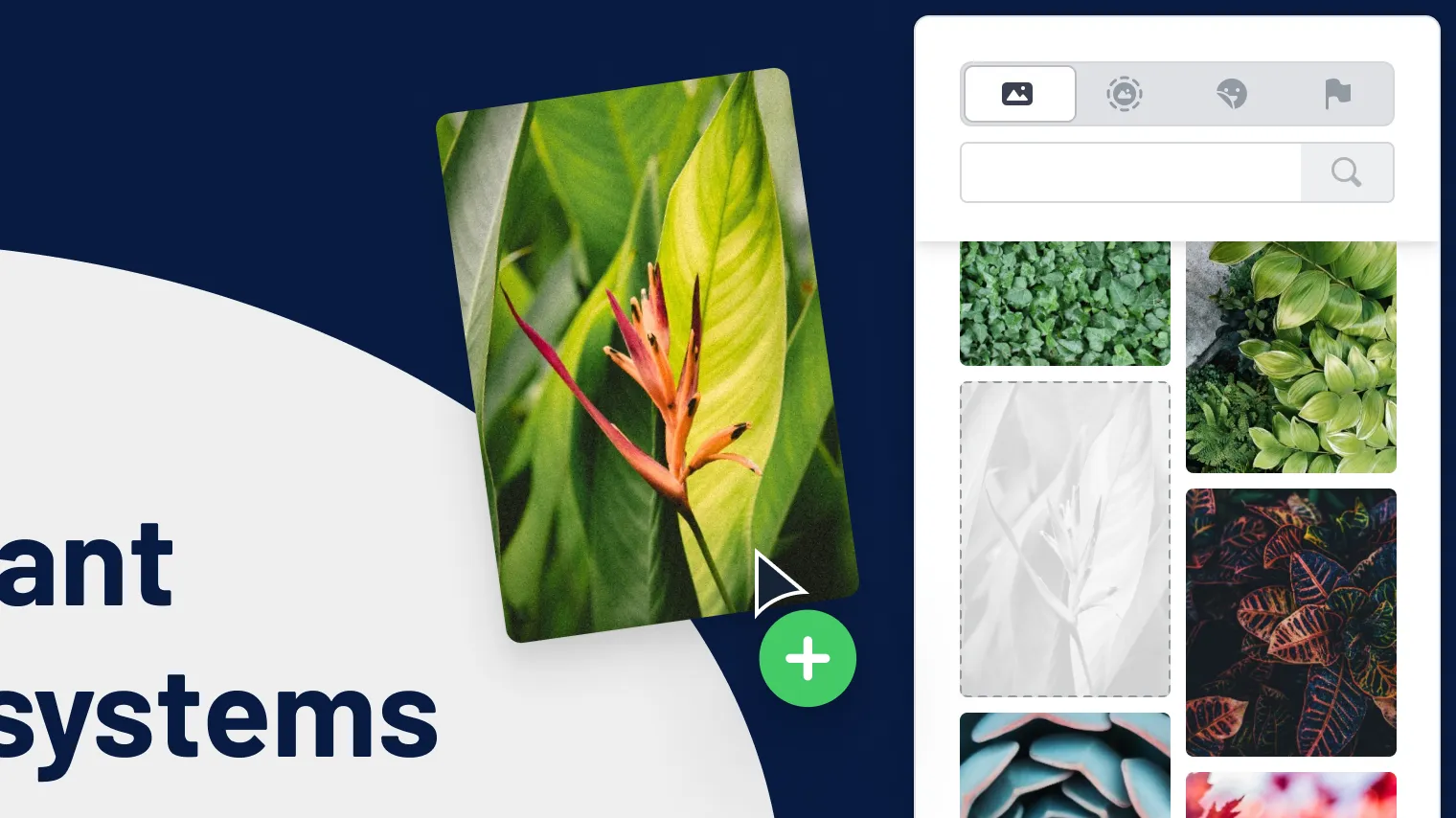 Choose from millions of premium images, GIFs, icons, and stickers from Unsplash and Giphy.
