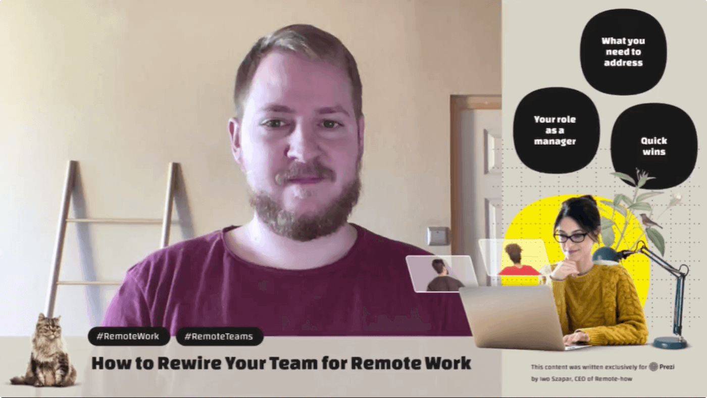 Only Prezi Video puts you and your graphics on screen together in real time for seamless, engaging, professional-looking videos you can make in minutes.